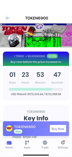 目前T6900 正在進行首次代幣發行(ICO),已成功募得超過 57.3 萬美元,並朝著 500 萬美元硬頂目標穩步推進中。