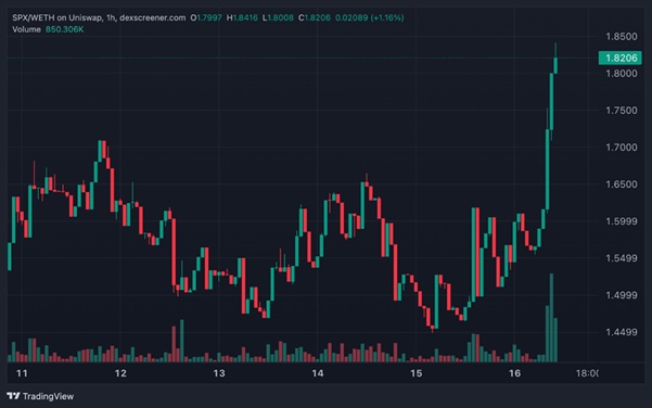目前SPX6900 報價為$1.83,成功突破今年 1 月19 日創下的前高$1.77。