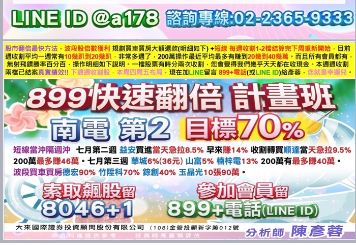 加Line @a178 留貼圖每天早上九點前,傳給您當天有誰將長紅漲停漲不停。