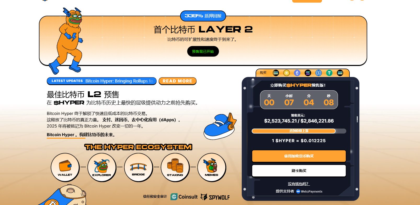 Bitcoin Hyper($HYPER)是第一台由 Solana 虛擬機器(SVM)驅動的比特幣原生 Layer 2,公開預售已募得 2,511,140 美元,接近 2,846,221 美元目標。代幣現價為 $0.012225,下一個價格階梯將於近期公佈。