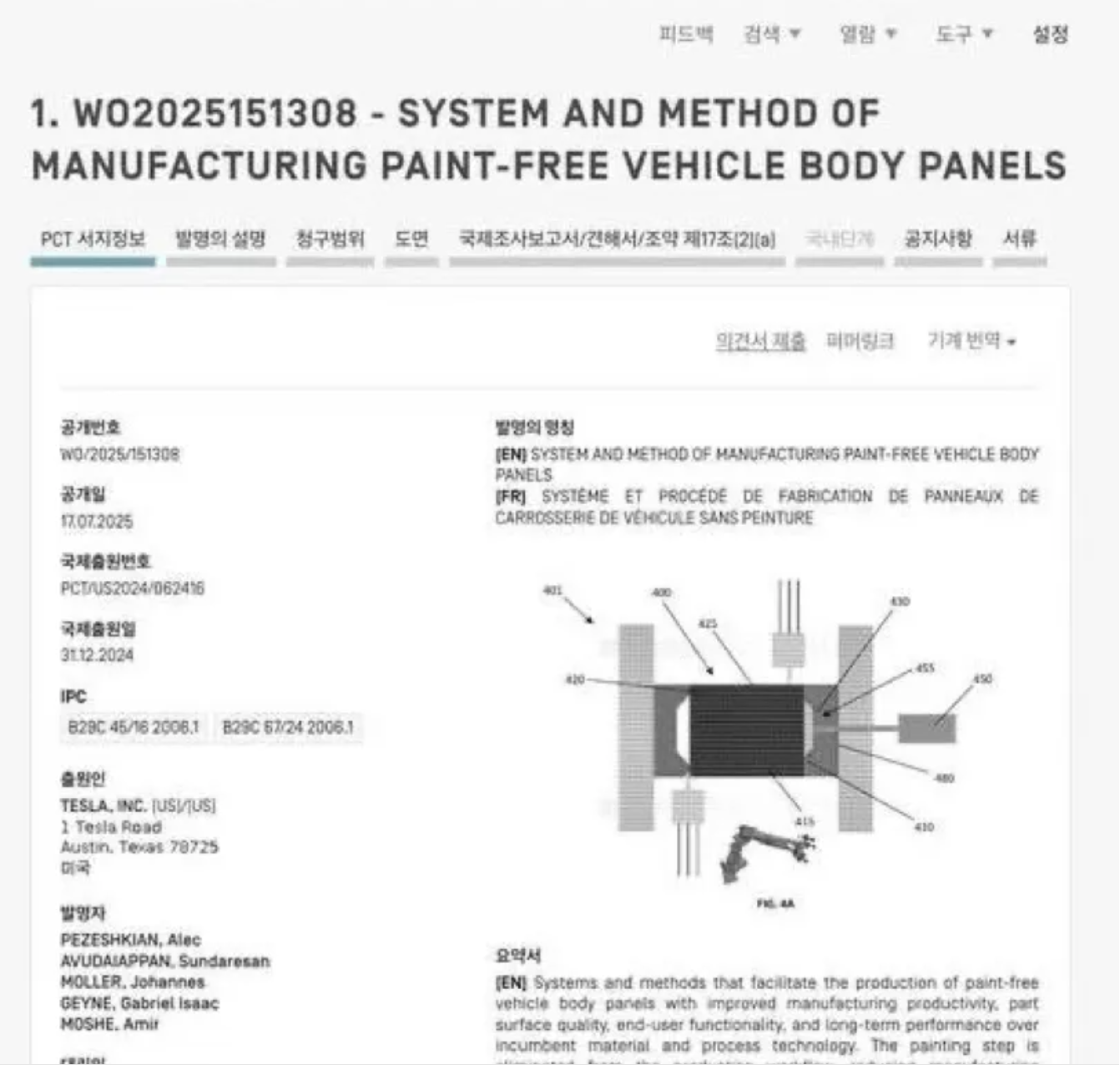 這項名為SYSTEM AND METHOD OF MANUFACTURING PAINT-FREE VEHICLE BODY PANELS(免烤漆車身鈑件製造技術),專利申請日期為2024 年12 月31 日,公開日期為2025 年7 月17 日。這與Cybercab的開發時間線一致。 Cybercab 概念車於2024 年10 月10 日在Tesla We, Robot 活動中亮相,並計畫在2027 年前開始生產。 2024 年底的專利申請表明,這項技術正處於Cybercab 原型開發和量產準備階段。