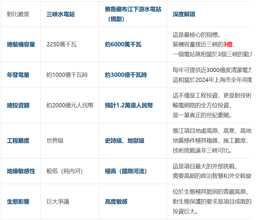 對火電、核電的協同效應: 雅江項目不是要取代誰,而是要協同作戰。它能大幅替代作為基礎負荷的火電,為其進行清潔化改造提供空間和時間。同時,它強大的調峰能力,又能與輸出穩定的核電形成完美互補,共同建構一個水火風光核多能互補的未來能源體系。