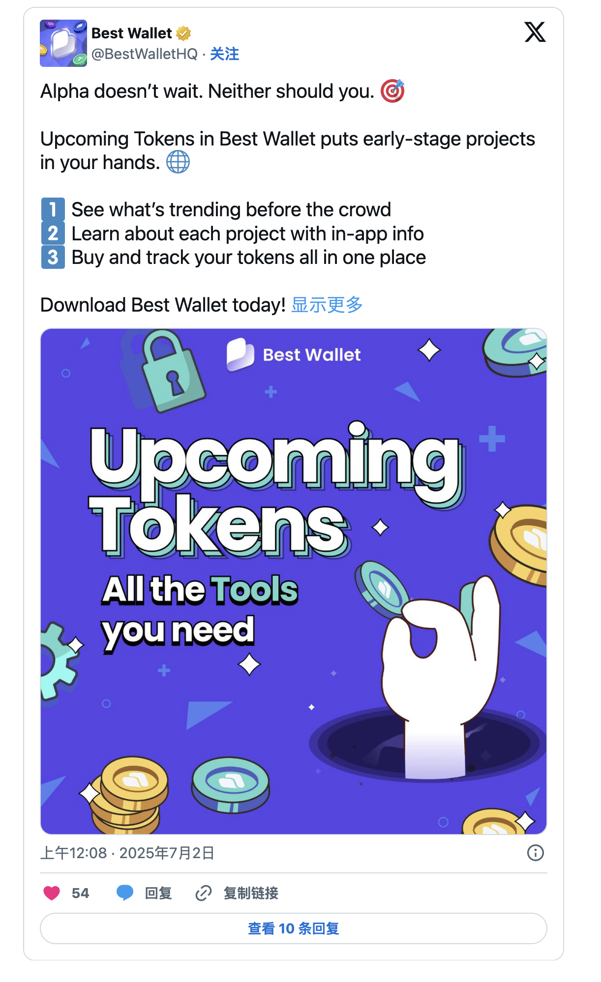 但 Best Wallet 不只一個錢包那麼簡單。它內建了諸如 「潛力幣雷達」 等創新功能,可作為你的鏈上早期機會篩選器,幫助用戶在專案起飛前率先埋伏,精準捕捉市場冷門 alpha。