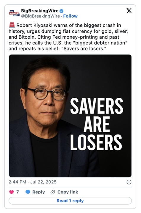 它驕傲地自稱為「第一個非腐敗代幣」(Non-Corrupt Token, 簡稱NCT)。為什麼說它“非腐敗”?只需看看銀行系統就明白了——像個淩晨剛醒的degen一樣瘋狂刷屏般印鈔,這正是讓羅伯特·清崎在一次採訪中情緒失控、瞬間化身為所有財經兄弟的暴躁老爸的原因:“錢就是債。”是的,羅伯特,我們已經收到了你的傳單。