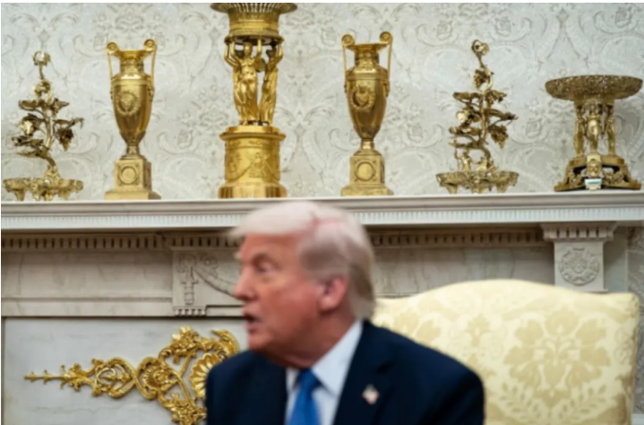 今年1月,唐納德·川普再次當選後,很快便著手重新裝潢白宮。他將佛羅里達海湖莊園那套奢華的裝飾風格照搬到了橢圓形辦公室:總統辦公區的牆面與各處表面,都大量裝點了鎏金雕像、豐腴天使與浮雕貼花。