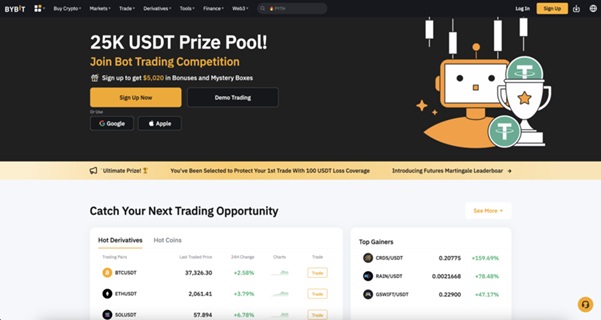 ByBit是一家備受好評的加密貨幣交易所,以其先進的功能和深厚的流動性著稱,尤其是在杠杆交易市場。它在永續合約上提供最高100倍的杠杆,深受專業交易者的喜愛。ByBit提供以USDT、BTC或基礎加密貨幣結算的合約。
