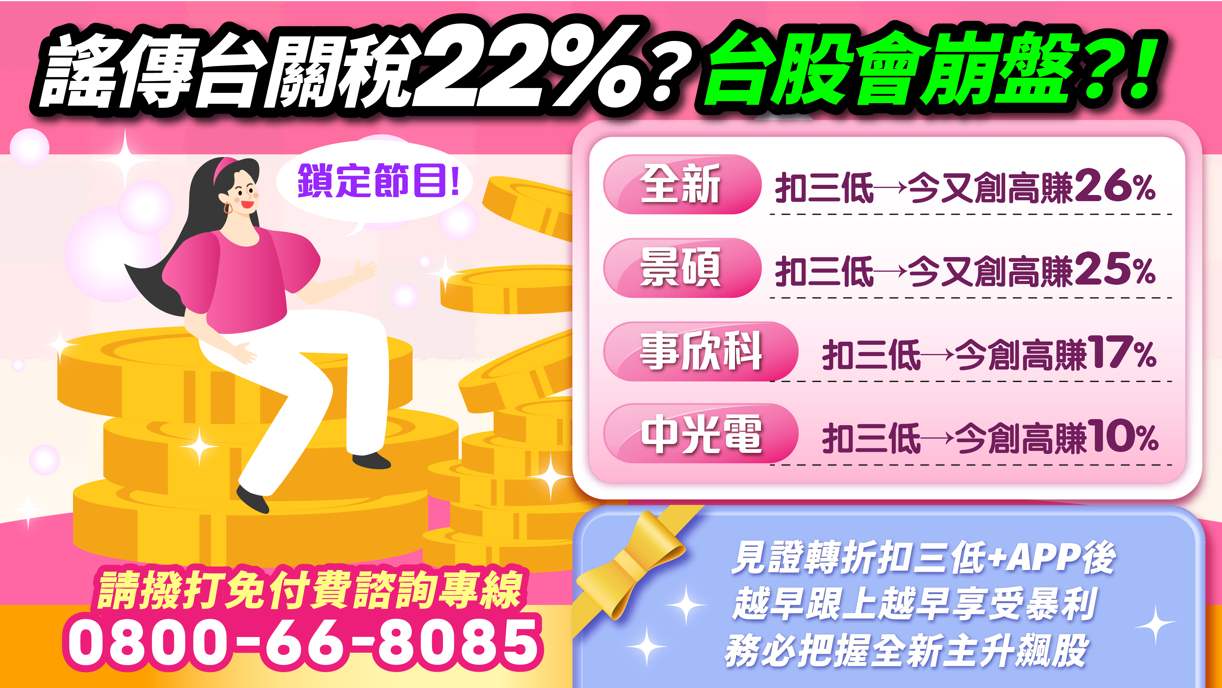 7/29(二)謠傳台關稅22%?輸日又輸韓!台股會崩盤?!