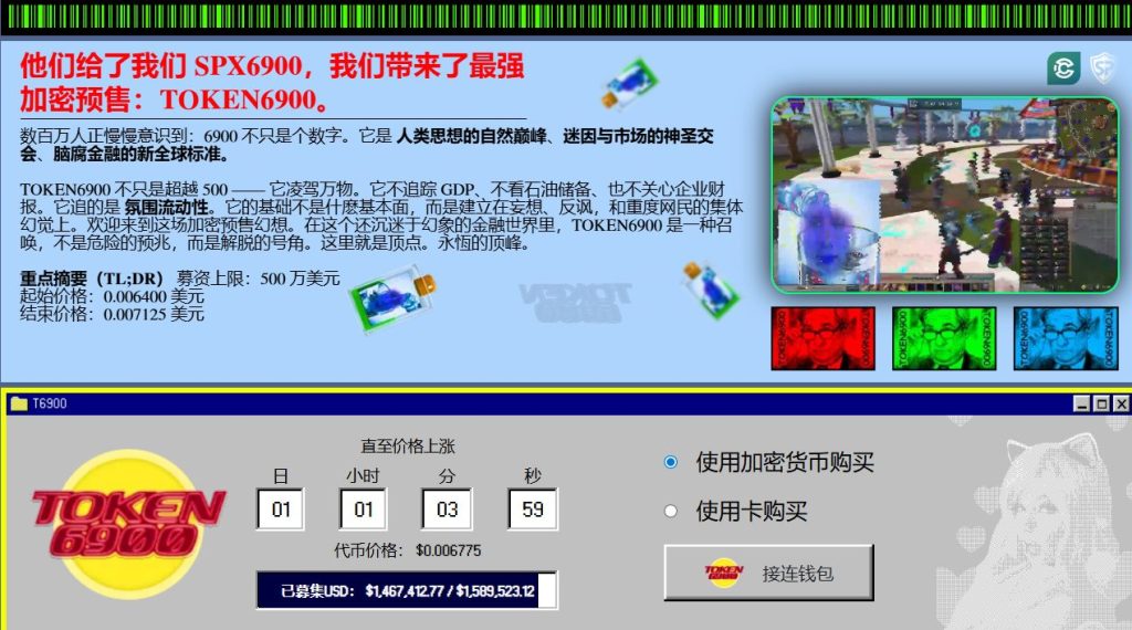 Token6900(T6900)承載了一整個世代的吶喊。它是最純粹的迷因幣形式——沒有路線圖、不做任何承諾,也沒有任何動機。它只靠純粹的「情緒流動性」驅動。