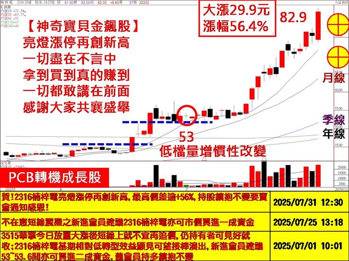7/1日53元鎖定→今日亮燈漲停再創82.9元新高