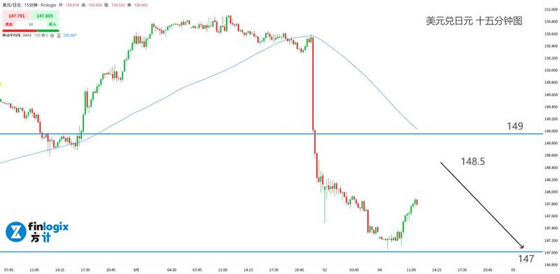 日內交易策略:(趨勢跟隨)回踩148-148.5看跌