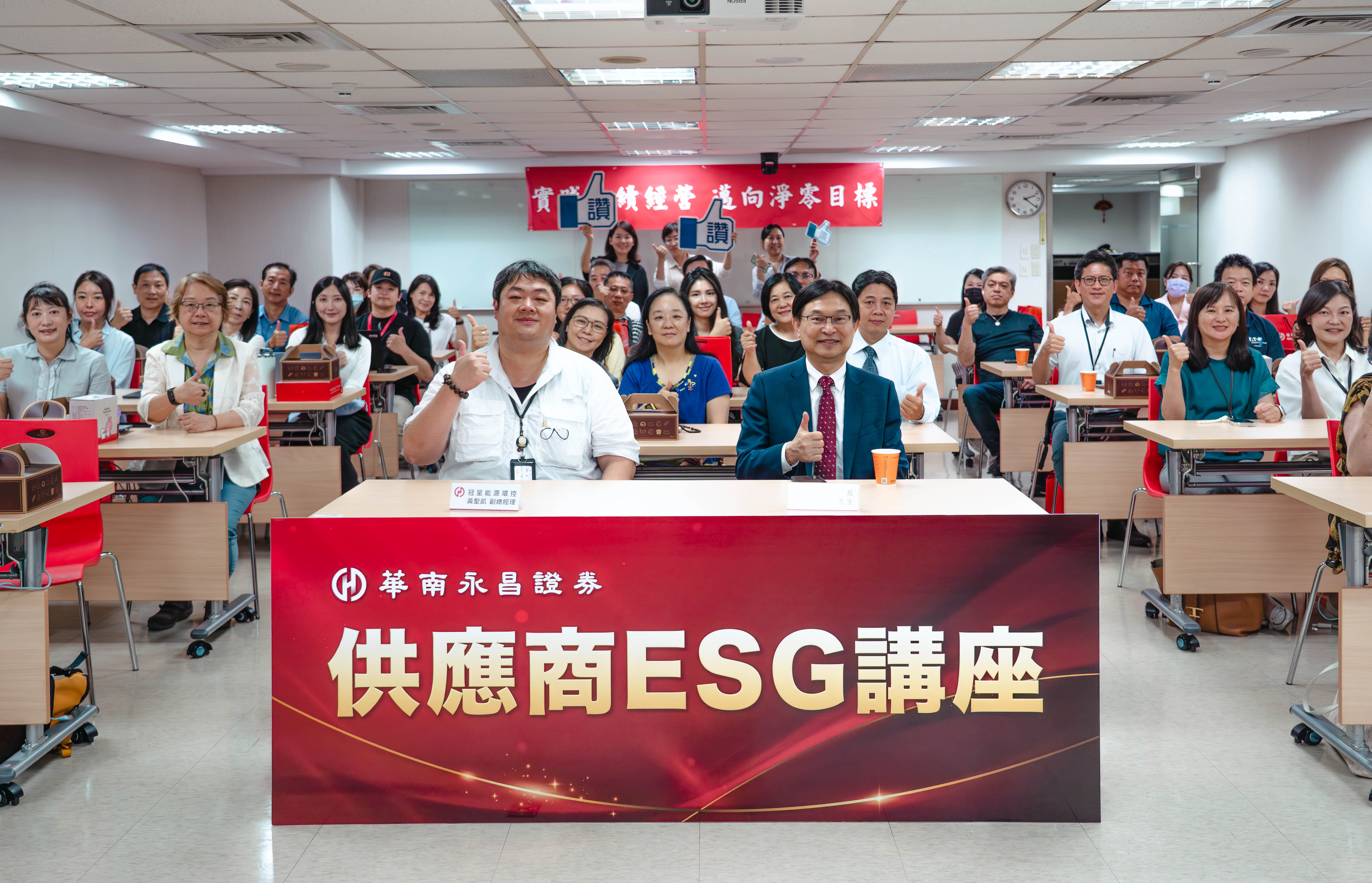 淨零浪潮席捲全球,永續轉型是企業共同挑戰,ESG表現直接影響競爭力,華南永昌證券不僅自我革新,更與供應商攜手前行,日前特別舉辦供應商專題講座,邀請冠呈能源環控副總經理黃聖凱,分享ESG實務與節能減碳策略。