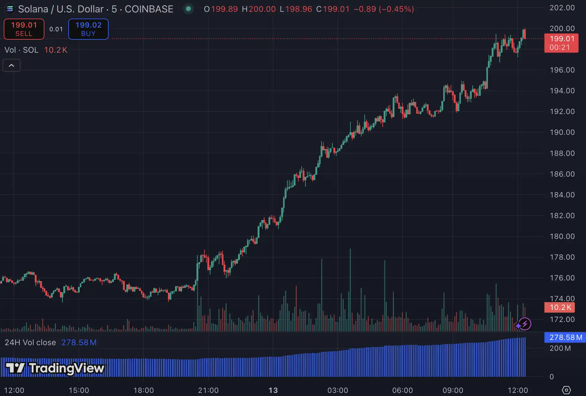 到了 8 月 13 日,Solana 官方也發佈正式公告確認 Solana 為該基金代幣化首發鏈,這也是 Solana 公鏈的首個代幣化公募基金產品,市場對其反應樂觀。過去 24 小時 Solana 價格上漲了 15%,在消息公佈後的三小時內 Solana 價格更是再度上漲 5%,突破 200 美元大關。