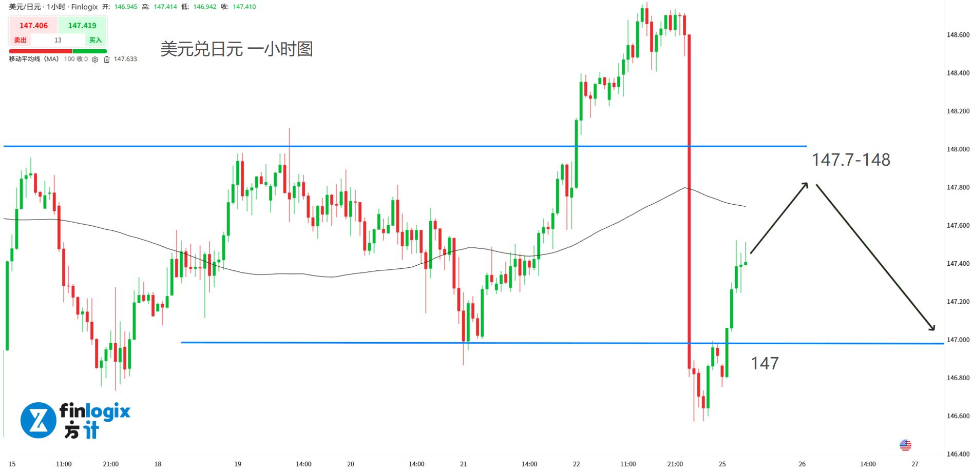 技術面:100均線方向不定,價格呈現劇烈震盪。如果美債利率亞盤繼續反彈,美日有機會回到148關鍵阻力,但很難完全回補上週五跌幅。因此交易策略以日內跟隨看漲,快進快出為主。