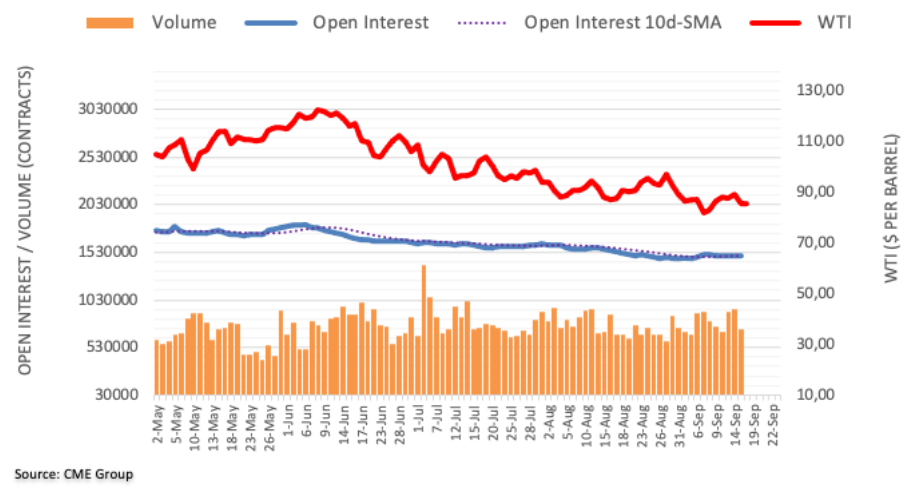 週四WTI原油期貨價格下跌之際未平倉合約和成交量萎縮,暗示油價目前不會深度回撤。對此,看漲嘗試應再度指向90美元/桶關口上方的近期頂部。