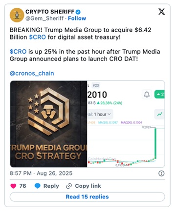 週二,特朗普媒體與技術集團宣佈與Crypto.com及Yorkville Acquisition Corp.達成價值64億美元的CRO代幣交易——這一頭條新聞表明,特朗普家族不僅是在試水,他們正以“全速衝刺”的姿態紮根數字資產領域。