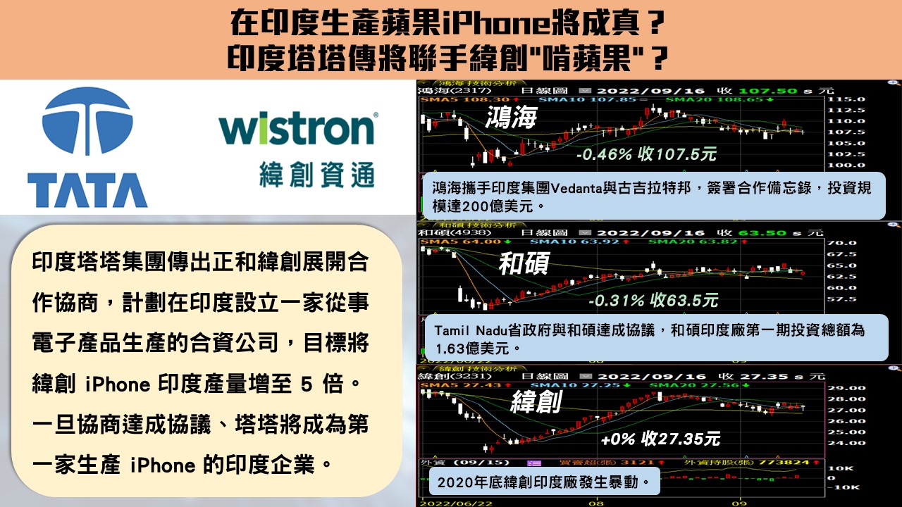 ●印度大型財閥塔塔(TATA Group)傳出和台灣蘋果代工廠展開合作協商,計劃在印度設立一家從事電子產品生產的合資公司,目標將緯創 IPHONE 印度產量增至 5 倍。而一旦上述協商達成協議,塔塔將成為第一家生產 IPHONE 的印度企業。
