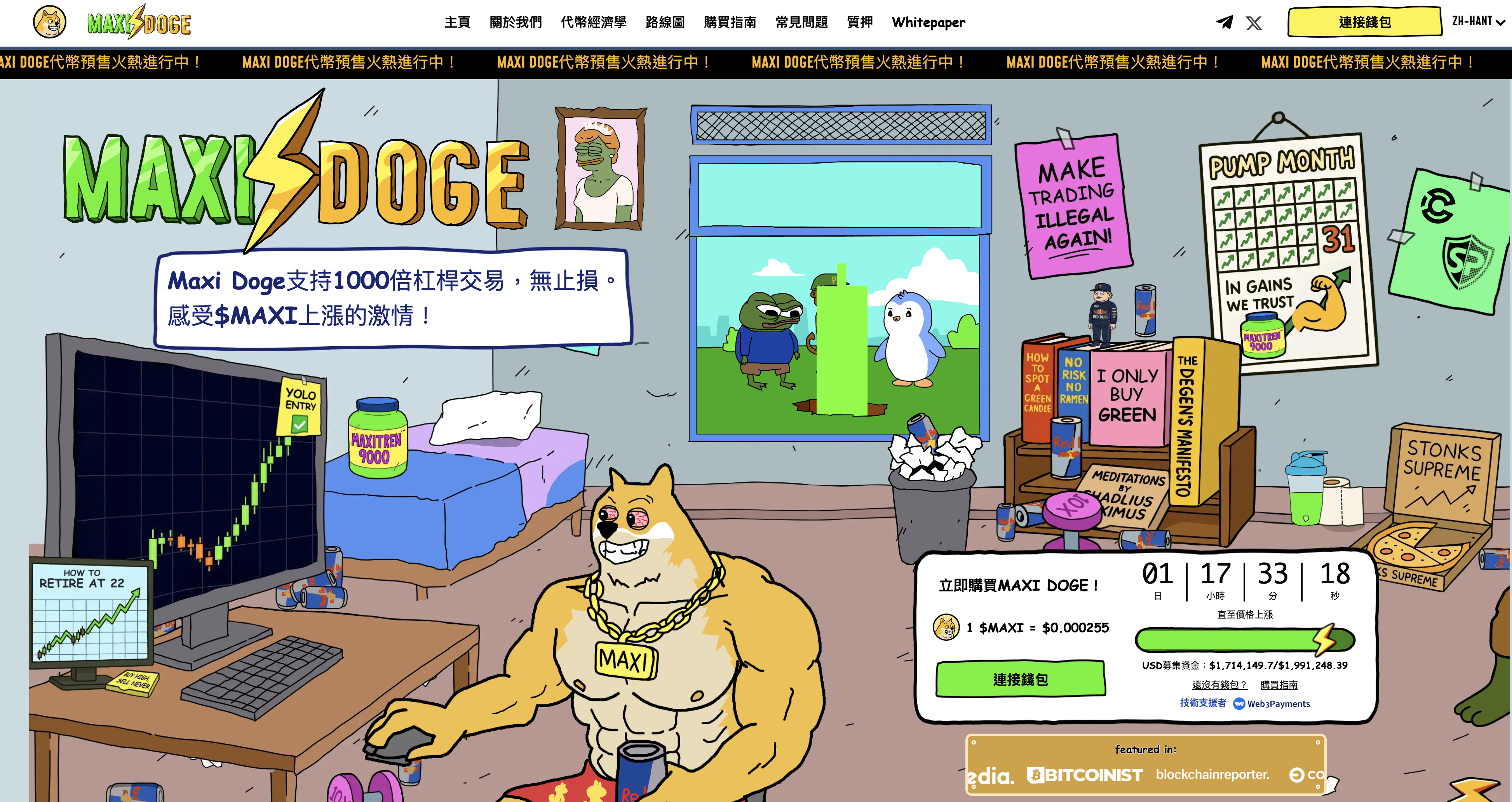 持有$MAXI的人自稱「信徒」,他們不追求穩定收益,只追求「If it dips, double down」。這種態度,讓Maxi Doge不只是幣,更是交易者的荷爾蒙化身。 Maxi Doge的總供應量為1502.4億枚,目前代幣的價格0.000255美元,目標募資上限1576萬美元。參與方式簡單,ETH、BNB、USDT、USDC甚至信用卡都能買,降低了進場門檻。