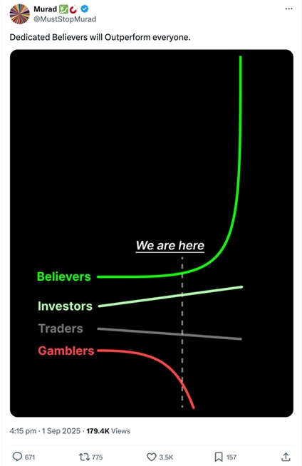 換句話說,如果你在最低點投入區區 $100,如今你手裡就已經握有4,100 萬美金!難怪 Mahmudov 喜歡高喊“Meme 超級週期”。