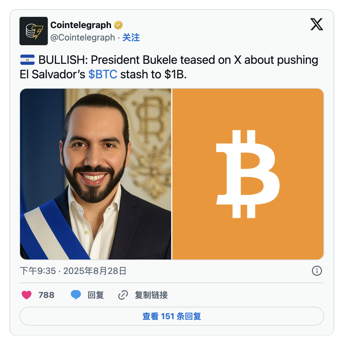 薩爾瓦多(El Salvador)的比特幣押注再次成為焦點。總統納伊布·布克勒分享了市場預測,稱該國的BTC持有量可能在2025年底達到10億美元。