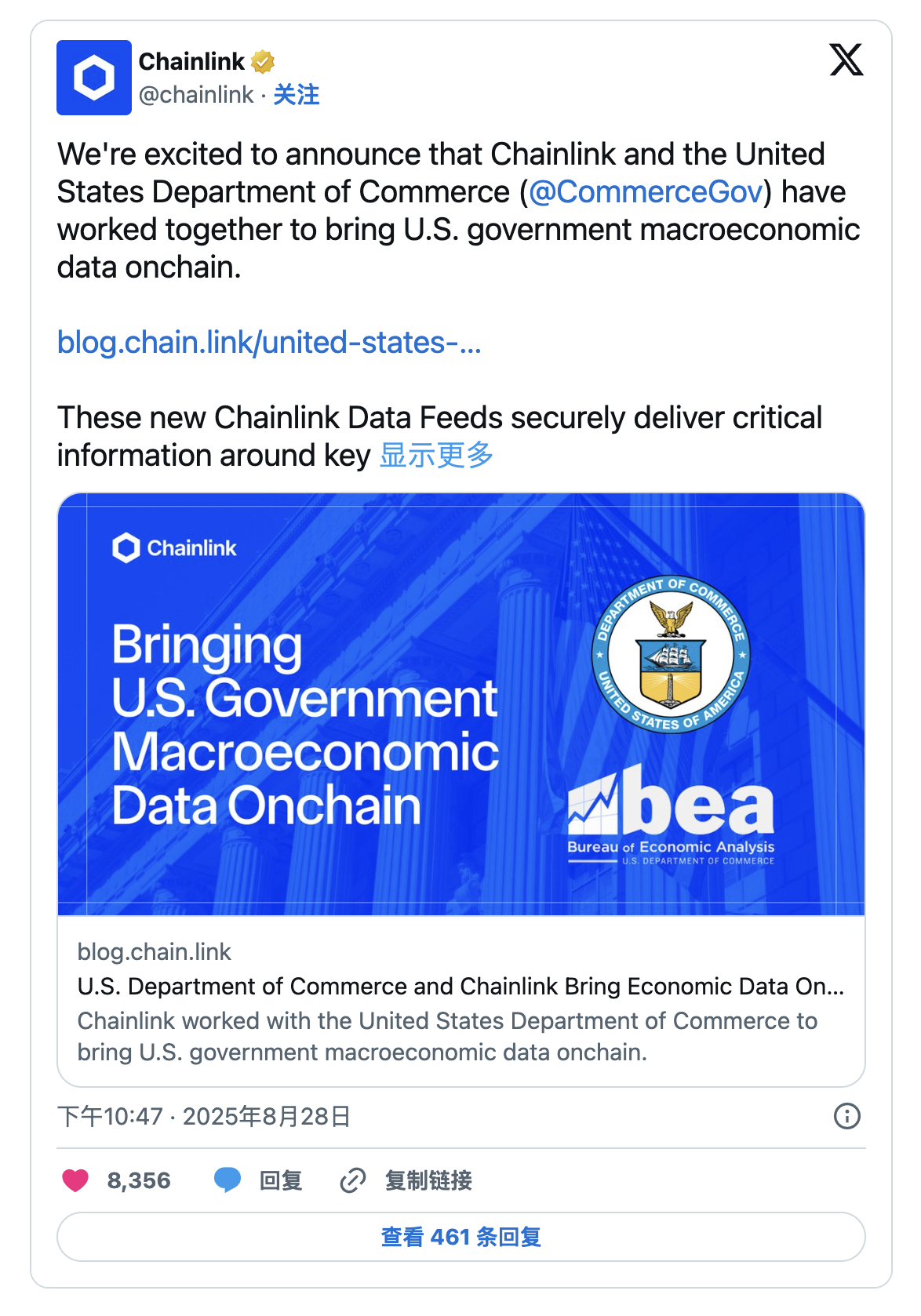 比特幣價格維持在112,000美元以上,隨著區塊鏈在傳統市場的採用增加,美國商務部宣佈,Chainlink(LINK)和Pyth(PYTH)將直接在鏈上提供美國官方經濟數據,如國內生產總值(GDP)和個人消費支出(PCE)價格指數。