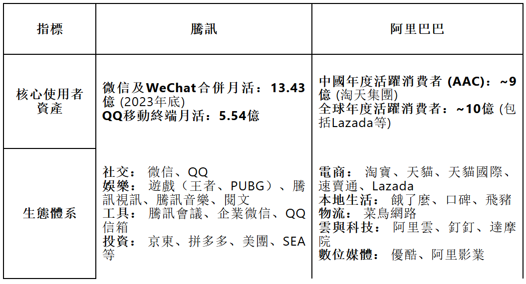 阿里的優勢在於其商業交易額和生態系統。它連接了數百萬商家和近10億消費者,建構了一個龐大的商業基礎設施網路。