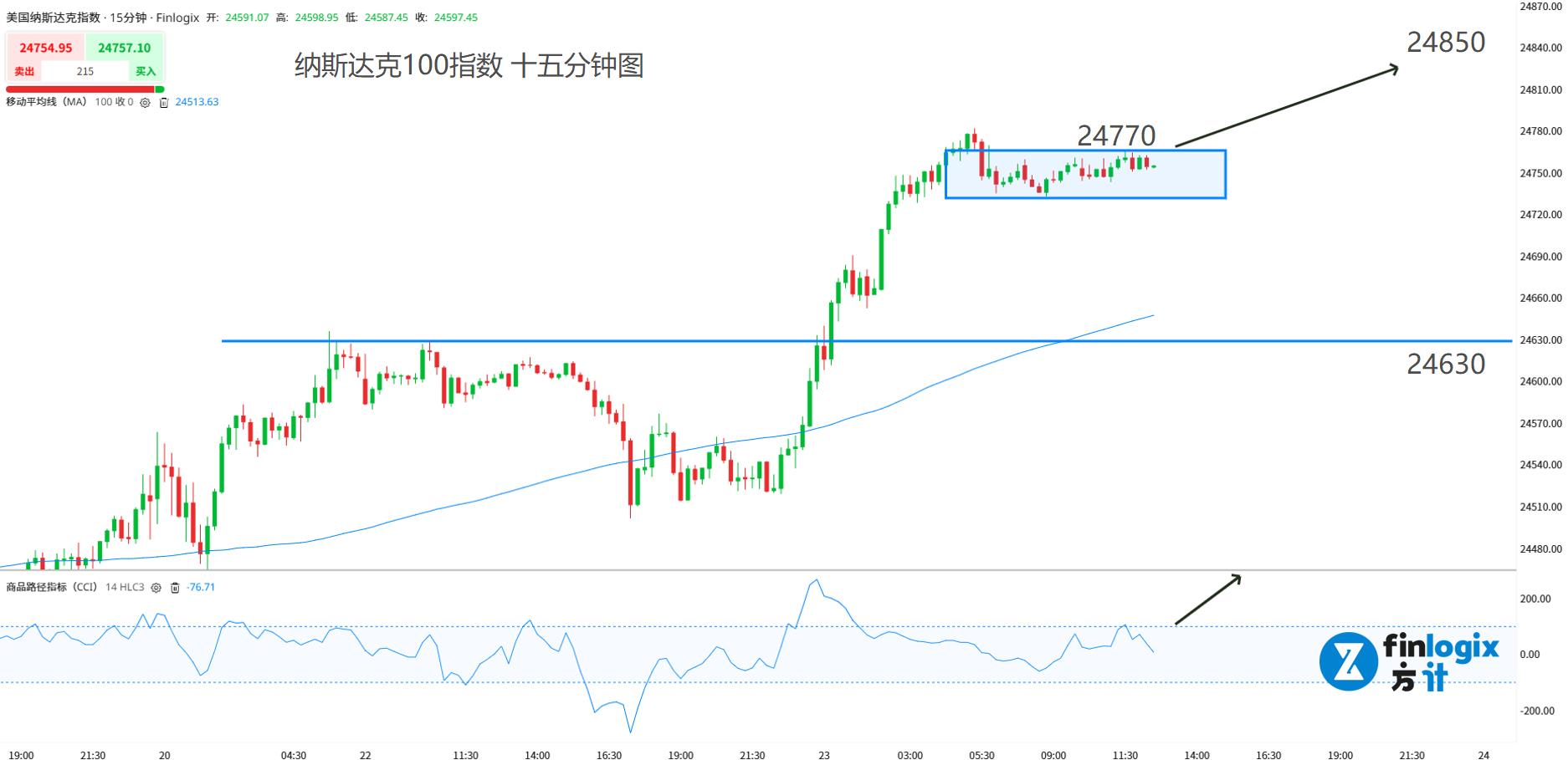 日內交易策略:(趨勢跟隨)突破24770跟隨波段看漲