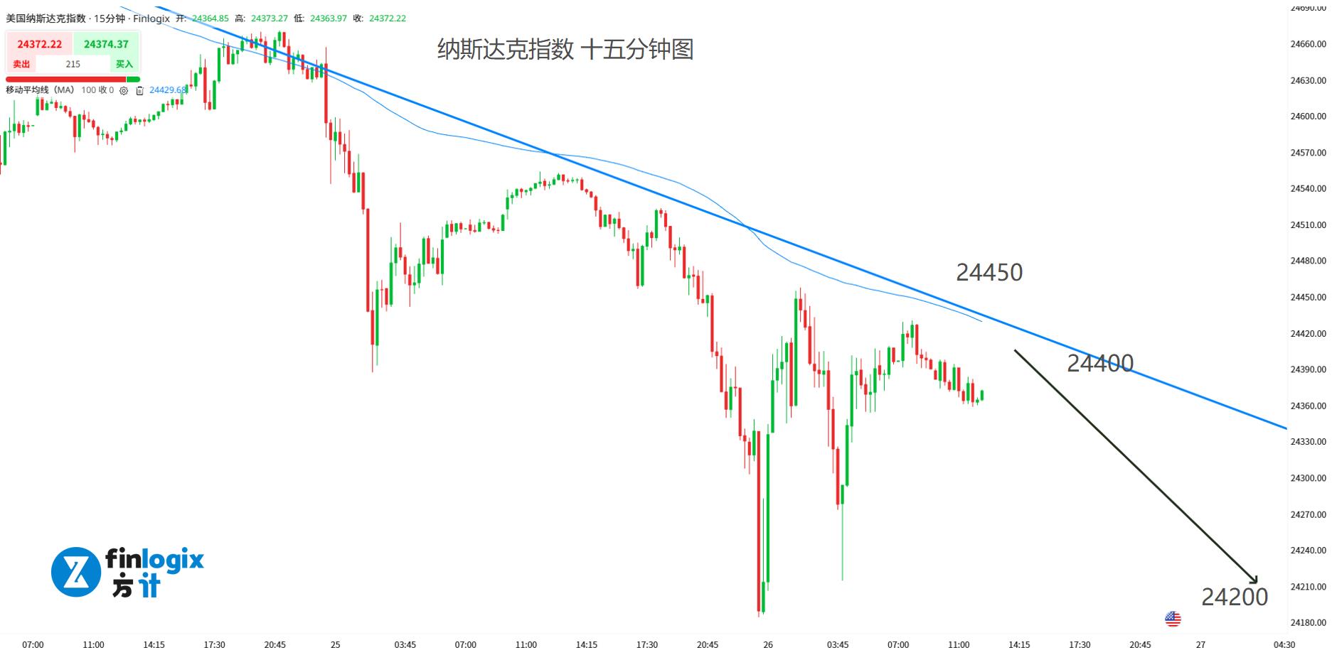 阻力參考:24400;24450(突破止損)