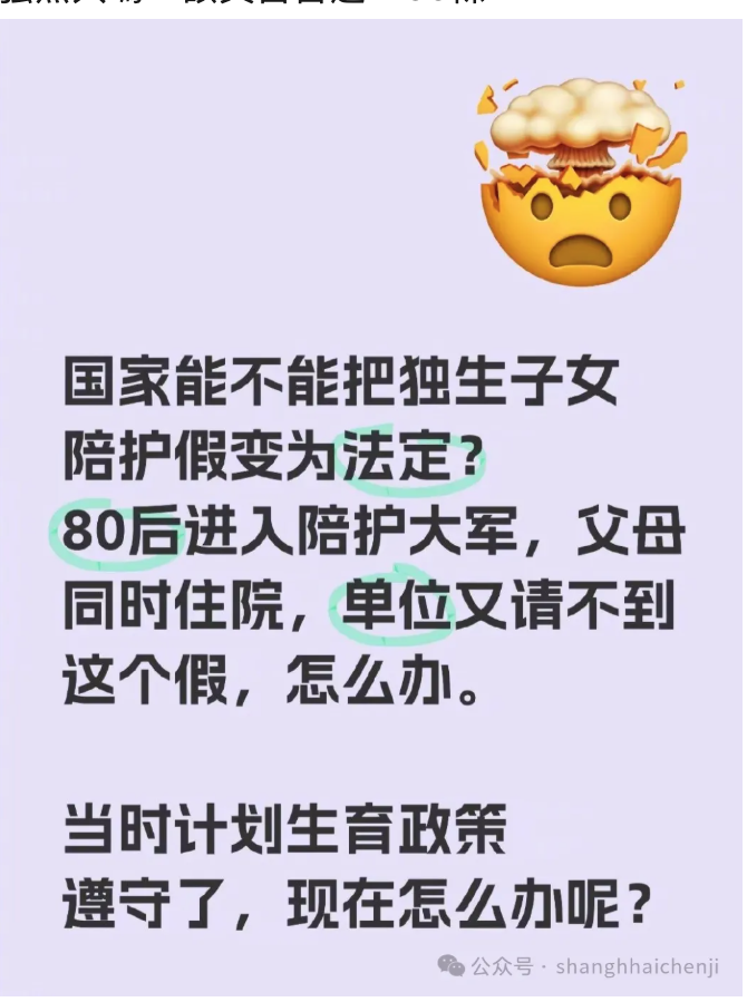 2022年初,國務院印發了《「十四五」國家老齡事業發展與養老服務體系規劃》,其中明確提出「探索設立獨生子女父母照護假制度」。 2023年上海市衛生健康委員會印發了《2023年上海市人口監測與家庭發展工作要點的通知》中則提出「鼓勵有條件的僱主探索設立獨生子女父母護理假制度,推進相關試點,進行前瞻性立法調研」。