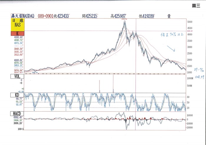 2000年9月開始兩年,NASDAQ修正70%以上。(圖三)