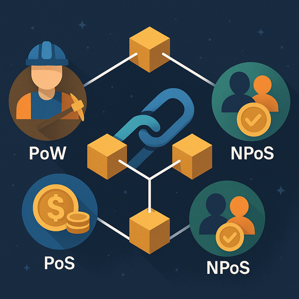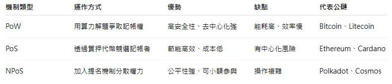 從 PoW 的算力競賽、PoS 的質押競爭,到 NPoS 的社群信任模型,共識機制的演進顯示出區塊鏈正邁向效率、永續與公平的平衡點。