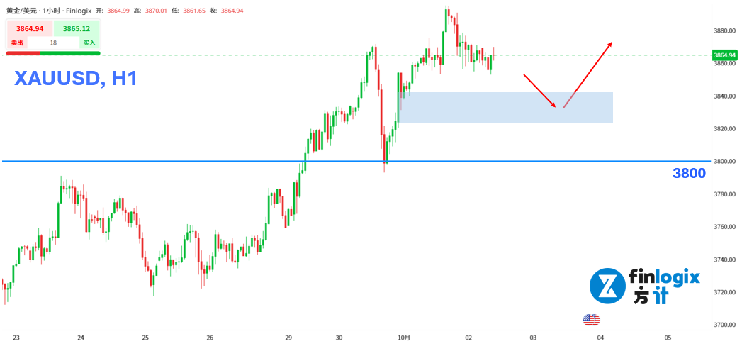 技術面:金價在政府關門落地後先揚後抑,下方有買盤承接的強力支撐,雖有回落但偏多趨勢仍未破壞,日內交易保持逢低看漲,回踩3825~3835止穩,考慮做多。