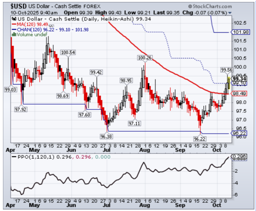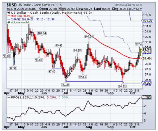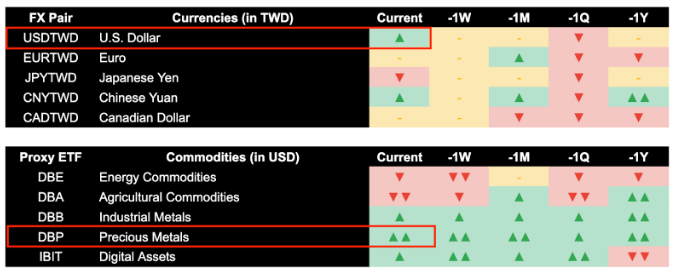 截至2025年10月9日,貨幣與大宗商品之趨勢信念矩陣指標報告
