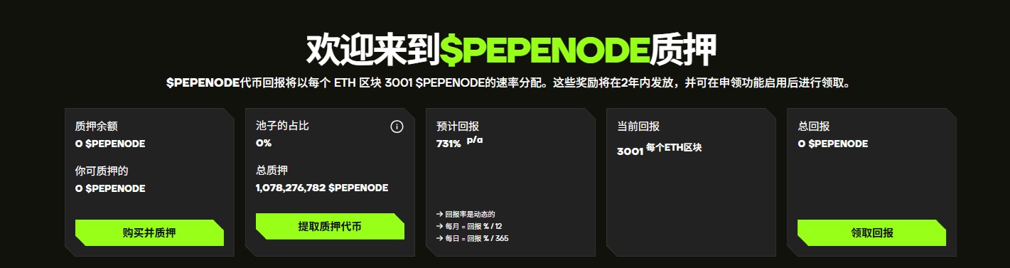 早期參與者現在就能購買PEPENODE代幣,並通過項目內置的質押協議立即啟動收益——目前提供高達 732% 動態年化收益率(APY)。