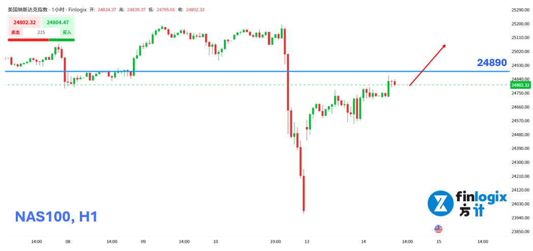 技術面:上周AMD、昨日博通相繼因與OpenAI合作而強勢反彈,帶動科技板塊大幅收復上週五跌幅,日內操作上維持對那斯達克指數的多頭交易思路。日內小時線站上24890,將有偏多機會。