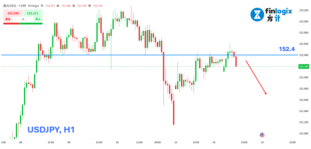 交易策略:日內小時線跌破152整數關卡,有跟空機會