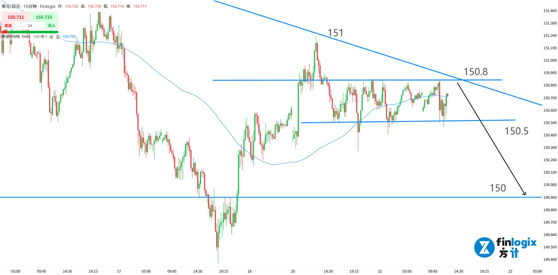 日內交易策略:(均值回歸)突破150.5後跟空,或150.8-151小止損佈局空單
