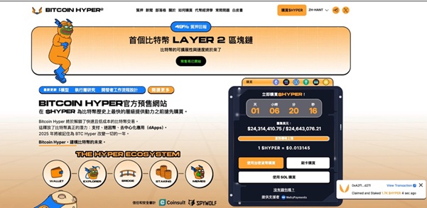 AI報告中特別指出,新興項目Bitcoin Hyper(HYPER)是最具顛覆性的技術創新之一。它採用Solana虛擬機器(SVM)架構,構建出首個比特幣Layer 2網路,能處理每秒高達65,000筆交易,並將手續費降至極低水準,同時維持比特幣主鏈的安全性。這項突破讓DeFi、NFT與去中心化應用首次能在比特幣生態中高效運行。