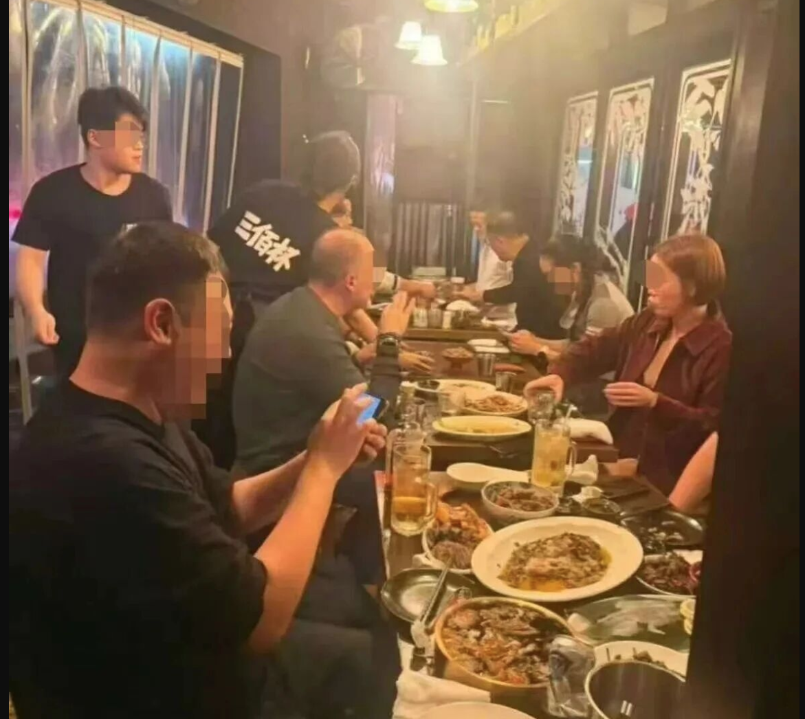 只見馬雲神情放鬆,穿著簡單的白色長袖,正在和好友們一起暢飲美酒、享受美食。