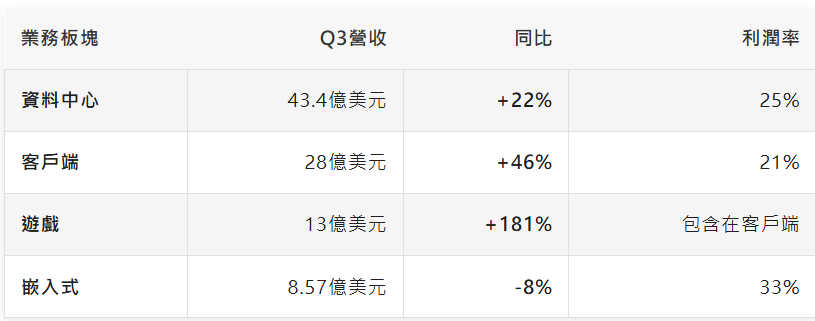 客戶端與遊戲業務營收達40.5億美元,同比暴漲73%,環比增長12%,成為本季度表現最搶眼的業務類股。