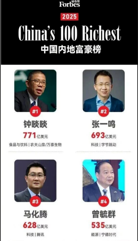 2025福布斯中國內地富豪榜新鮮出爐,直接把“財富內卷”捲出新高度。