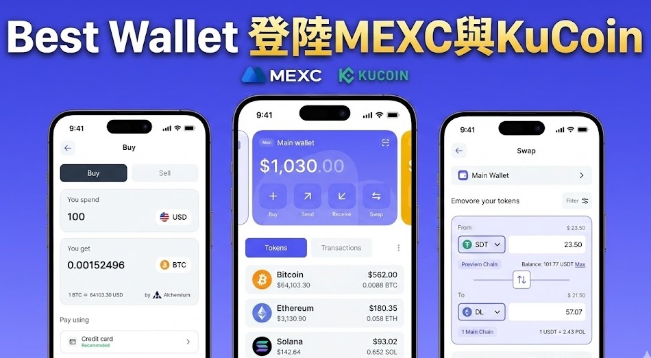 Best Wallet為多鏈非託管Web3錢包,支援超過60條鏈,整合儲存、兌換、質押、即將推出代幣入口與跨鏈DEX,並採用Fireblocks MPC-CMP機構級安全技術,同時支援生物辨識登錄。官方計畫於2026年底前取得40%市佔率。