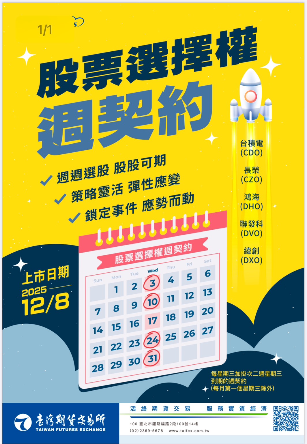 新增 「股票選擇權週契約」,也就是大家口中的「個股週選」。