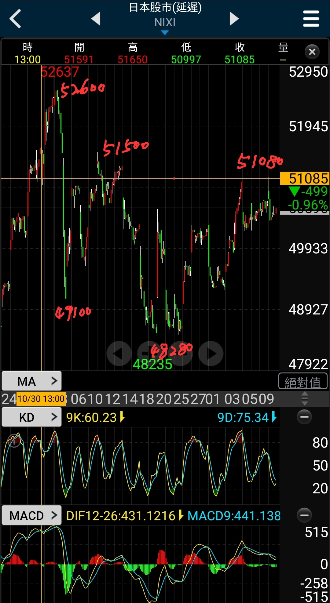 日經再次確認51100壓力!