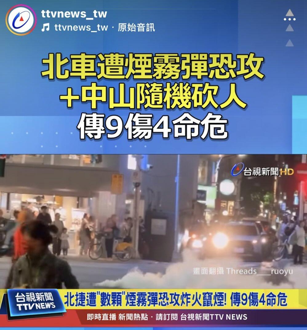 通緝犯在北車丟煙霧彈後,跑到中山誠品隨機砍人!