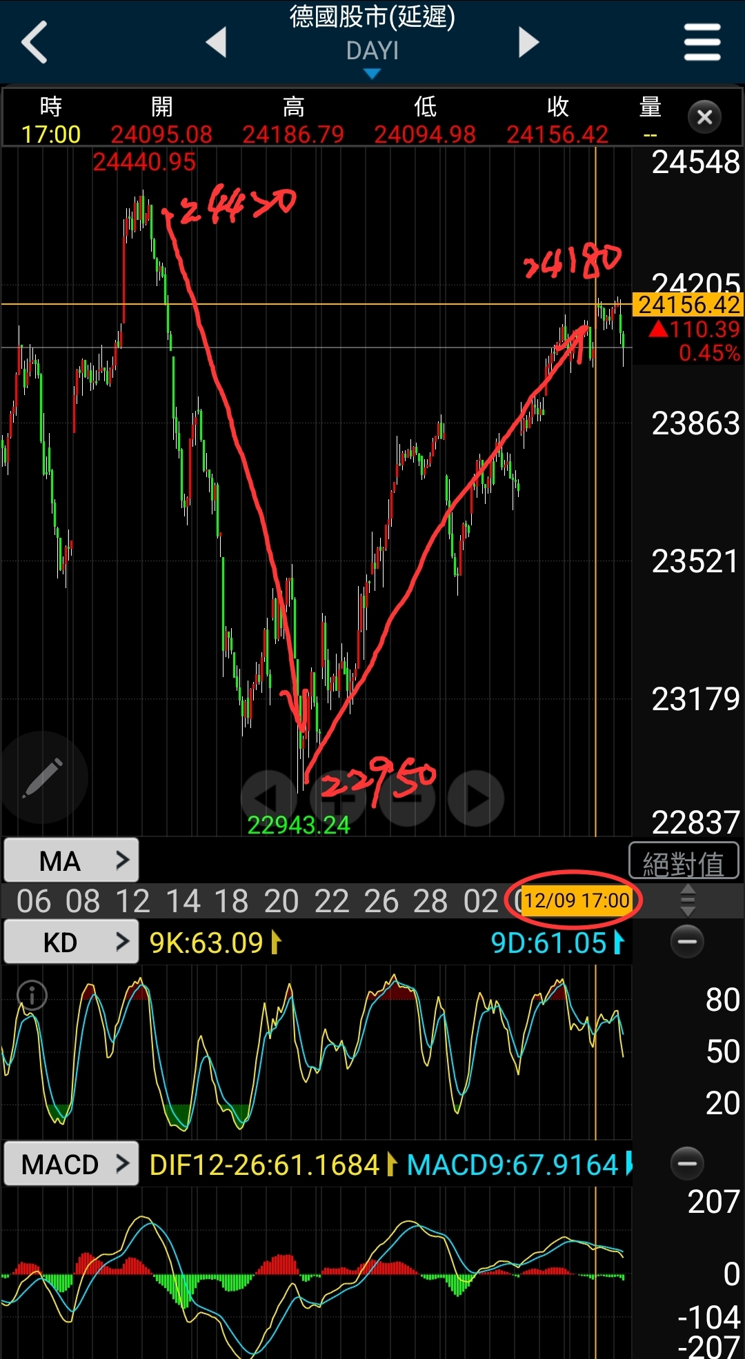 德國從11月中高點24420/22950/越過24180來回已有超過2700點價差!😂😂😂