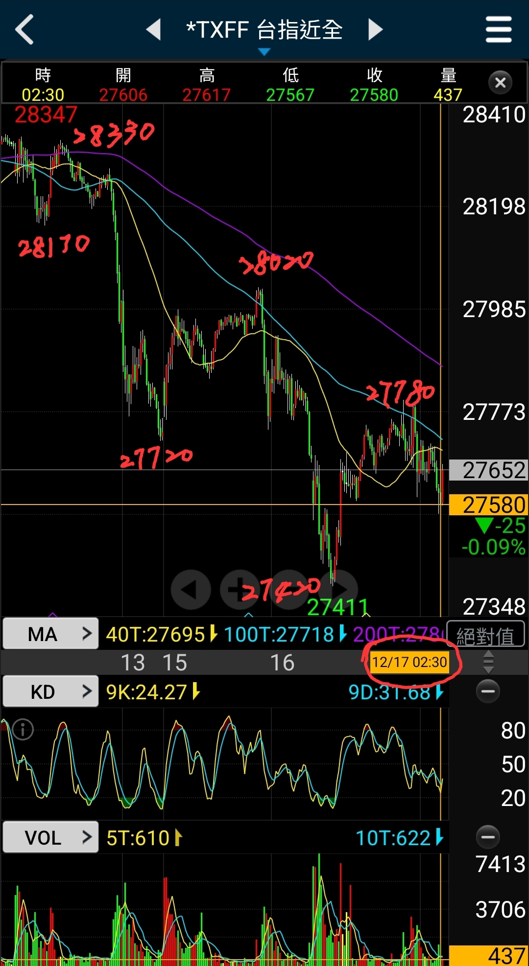 台指27910/27770/27980/摜破27850來回又有500點價差😂