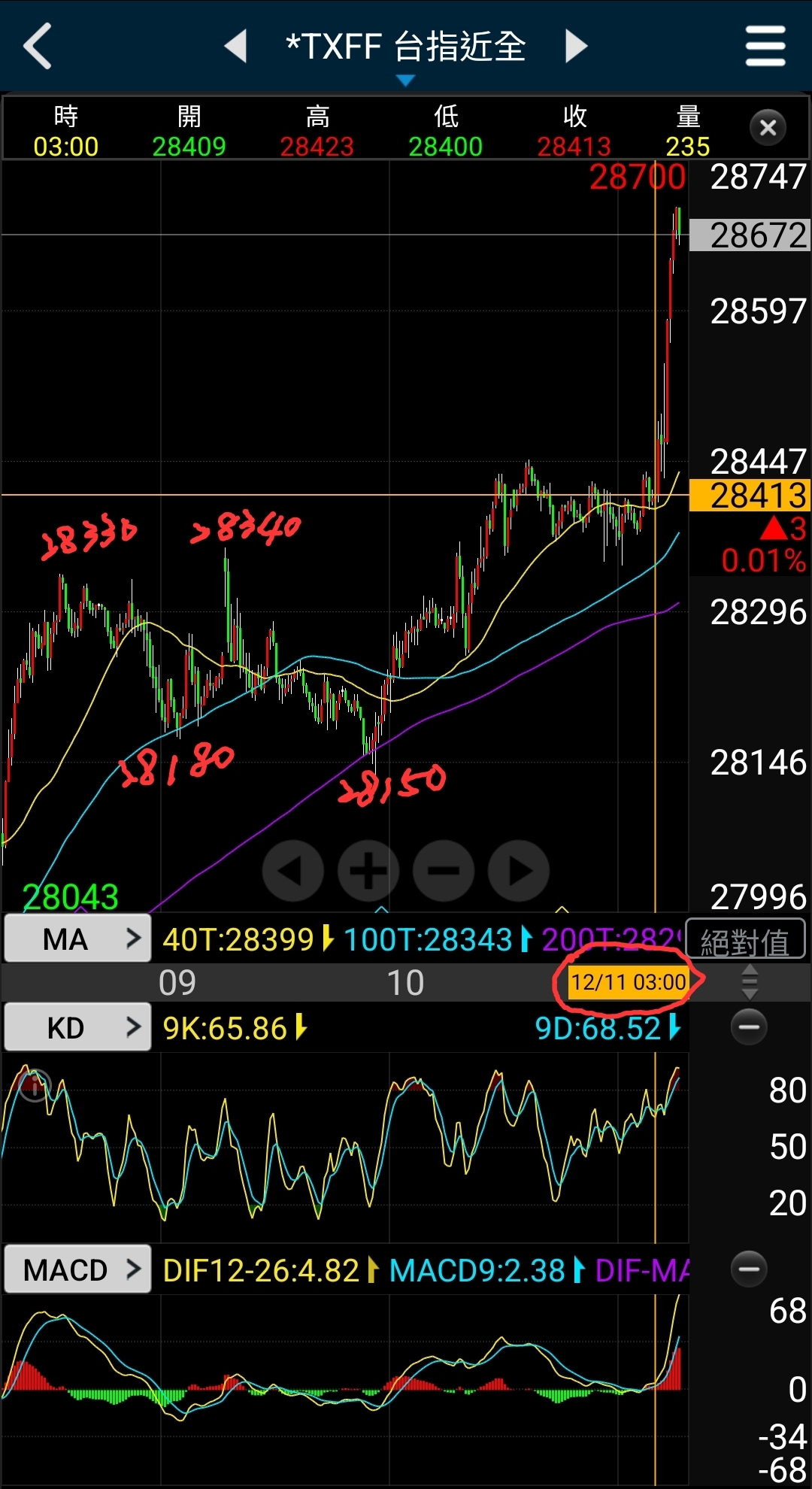 台指28330/28180/28340/28150/越過28430來回又將湊滿千點價差!