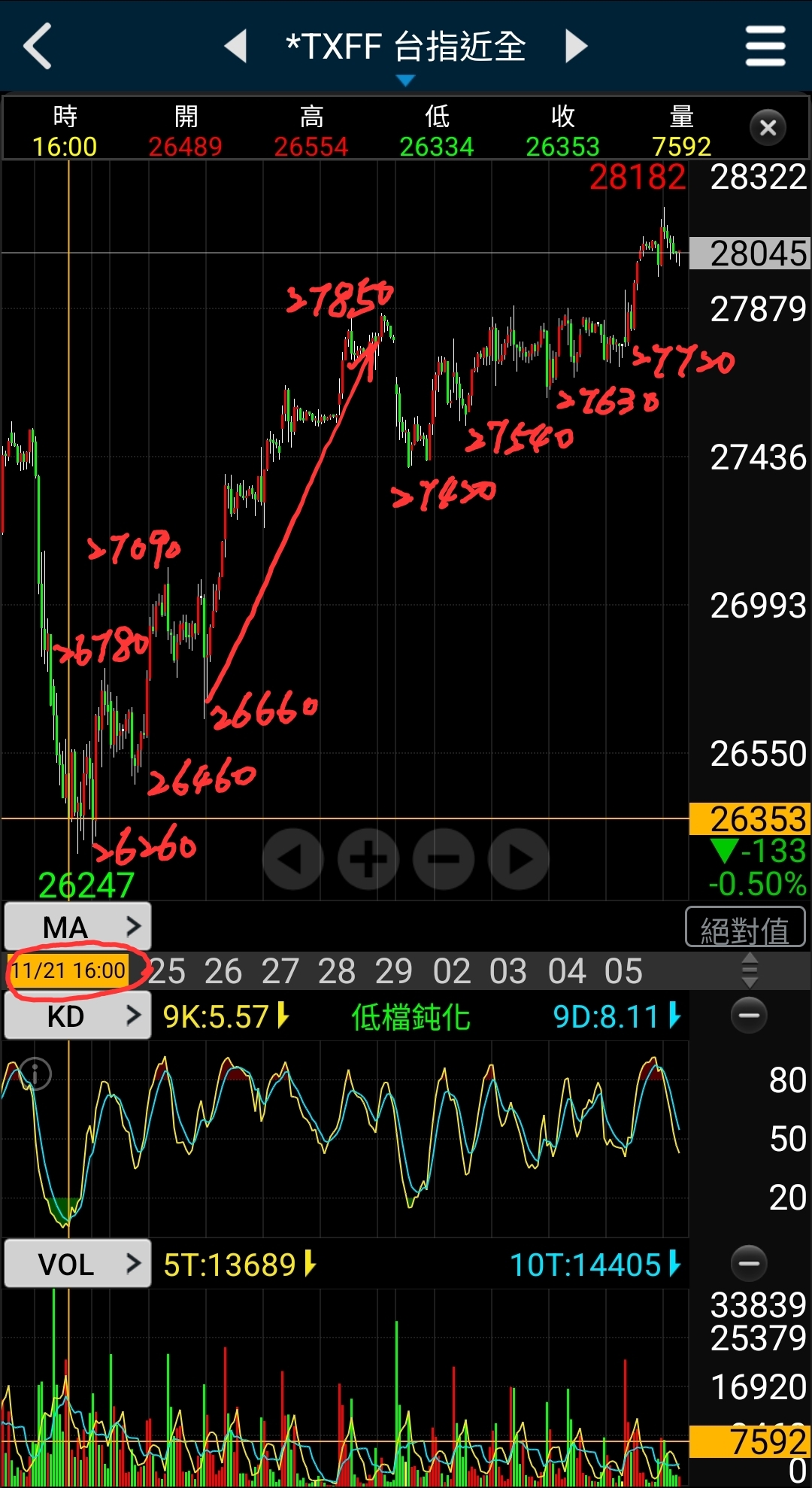 11/21台指跌破26260停利後,反彈越過28330又有超過6000點價差!🤣🤣🤣