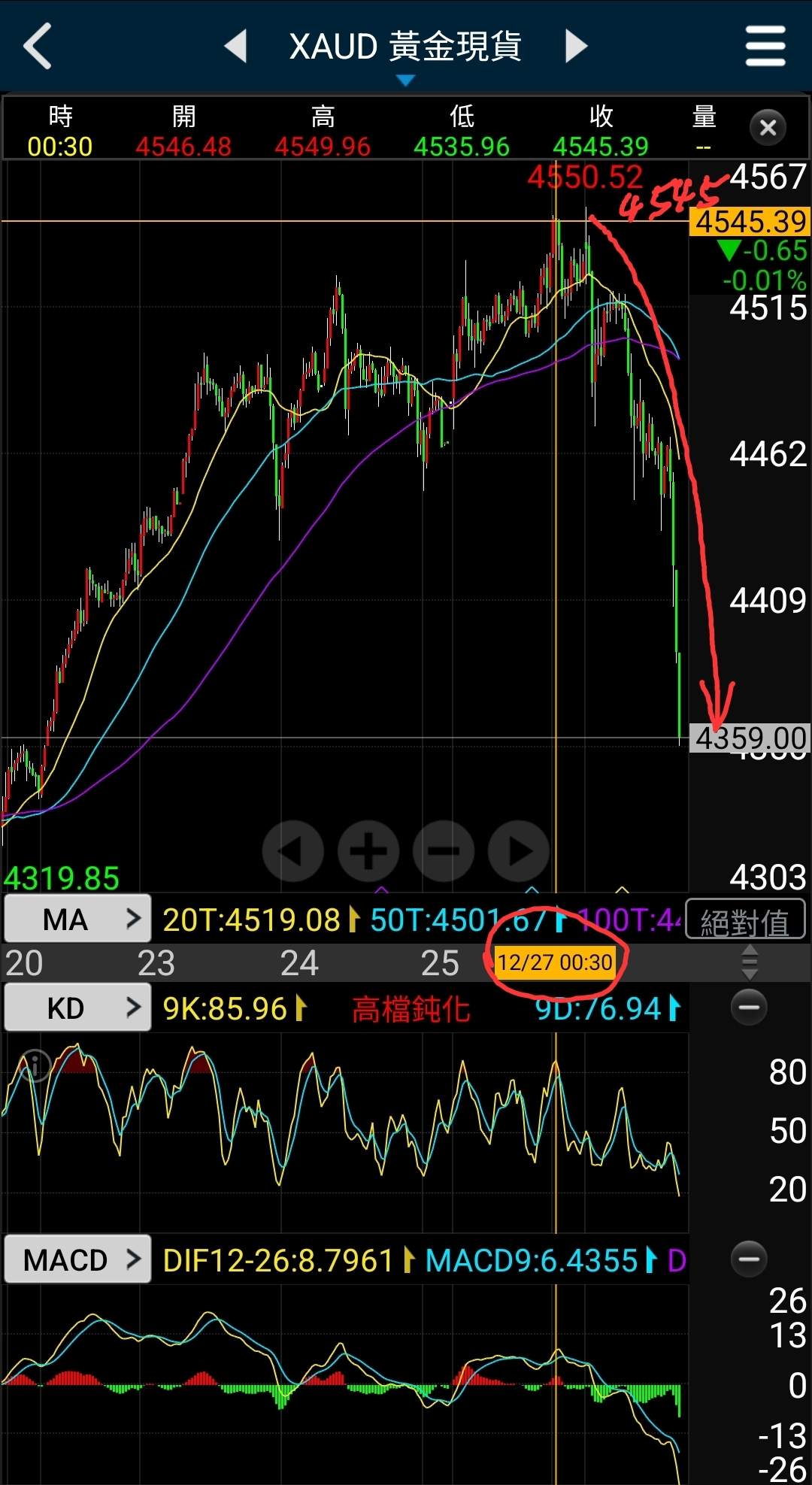 黃金在昨晚9點過後才向下急跌,我在五點還特別再次提醒:貴金屬的盛宴結束!😎