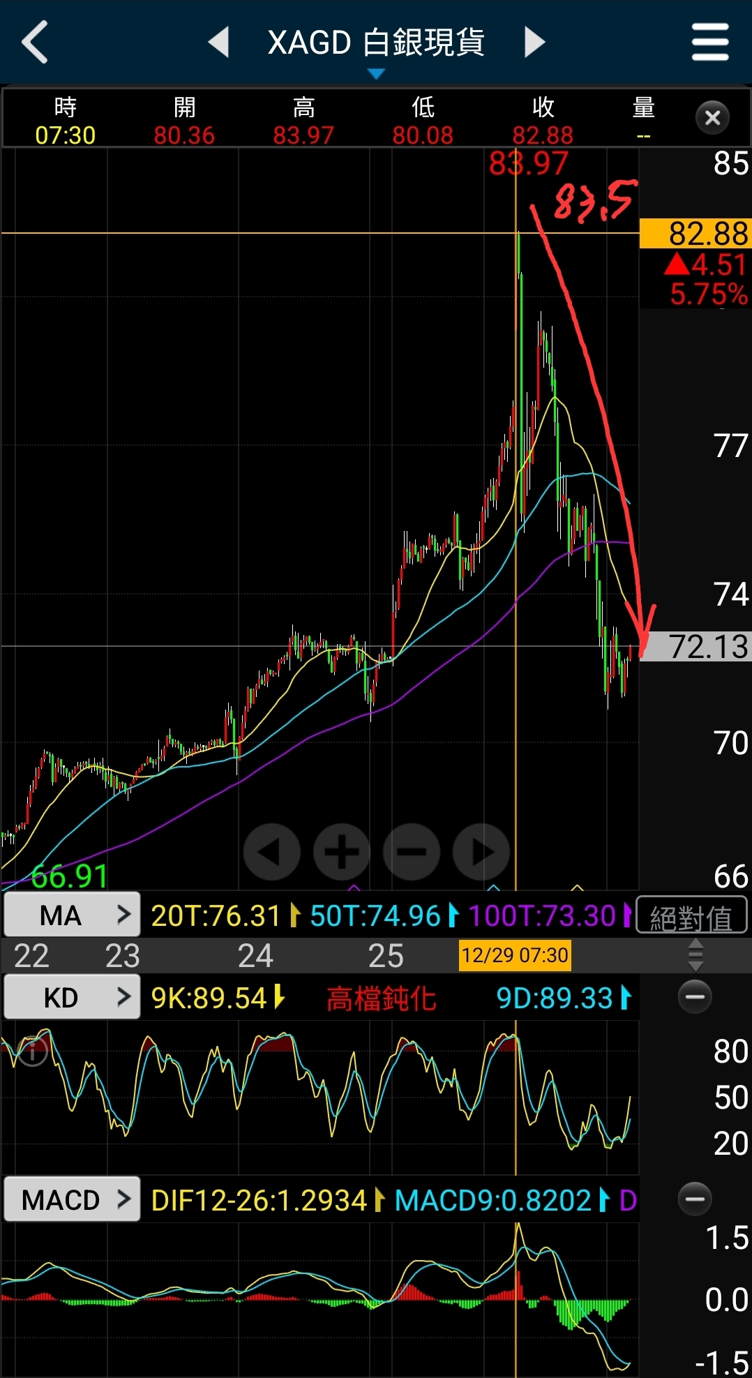 黃金4545,白銀83.5也是,